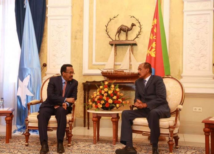 Asmara, Eritrea – Madaxweynaha dowlada Federaalka Soomaaliya Maxamed Cabdullaahi Maxamed ayaa booqday dalka Ereteriya muddadii u dhexaysay 10-ka ilaa 11-ka bisha Jannaayo ee 2020, kaddib martiqaad rasmi ah oo uu ka helay Mudane Isaias Afwerki.