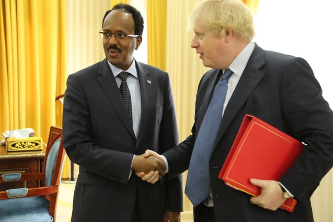 Boris Johnson waxaa uu Soomaaliya yimid isaga oo ah wasiirka arrimaha dibadda bishii March 2017-kii, isaga oo la kulmay madaxda Soomaaliya.