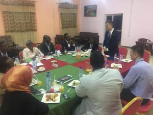 Kulanka Wasiirka iyo Safiirka waxaa goob joog ka ahaa Masuuliyiin ka tirsan wasaarada Warfaafinta uu ka mid yahay Agaasimaha guud ee wasaarada Mudane Cabdiraxmaan Yuusuf Sheekh Cumar Al-cadaala iyo masuuliyiin kale