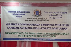 Muqdisho – Kulan wadatashi oo labo maalin socon doono ayaa maanta ma furmay magaalada Muqdisho kaasi oo u dhaxeeya Wasaaradda Arrimaha Dastuurka Soomaaliya iyo qaar kamid ah bulshada iyo aqoonyahano.