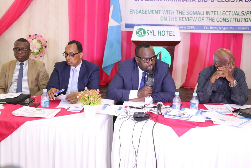 Wasiirka Arrimaha Dastuurka Saalax Axmed Jaamac oo shirka furay ayaa yiri “waxaan ku faraxsanahay inaan shirkan idin kala soo qaybgalo oo ka doodno aayaha dambe ee Soomaaliya, sida aad ogtihiin dastuurka inta ugu badan dib-u-eegis ayaa lagu sameeyay waxaana dooneynaa inaad taladiina ka dhiibataan; aqoonyahanada waxay kamid yihiin dadka ugu muhiimsan bulshada sidaa awgeed waxaan idinkaga fadhinaa inaad aqoontiina ku kordhisaan howlaha aan wadno”.