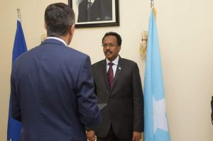 Madaxweyne Farmaajo oo warqadaha aqoonsiga ka guddoomay Safiirka Midowga Yurub