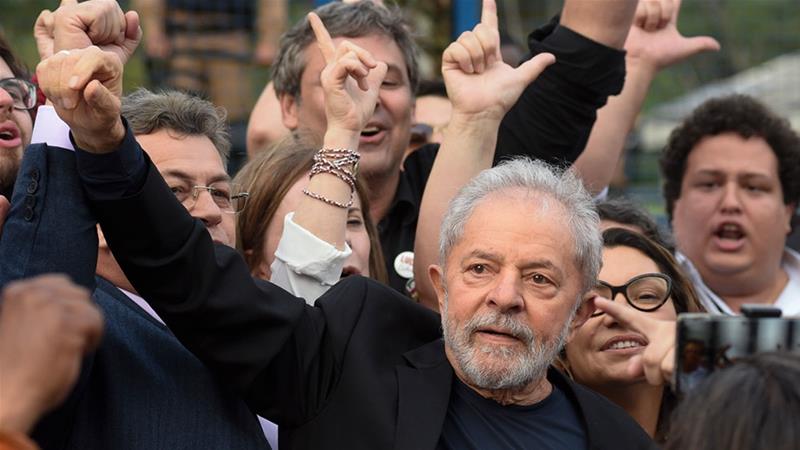 Markii uu ka soo baxay xabsiga oo uu 19 bilood ugu xirnaa eedo laaluush qaadasho ayuu waxa uu cirka u taagay gacantiisa oo laaban iyada oo ay si weyn usoo dhaweyeen taagerayaasha xisbigiisa shaqaalaha oo ruxayay calan guduudan iyo boorar ay ku qoranyihiin soo daaya Lula.