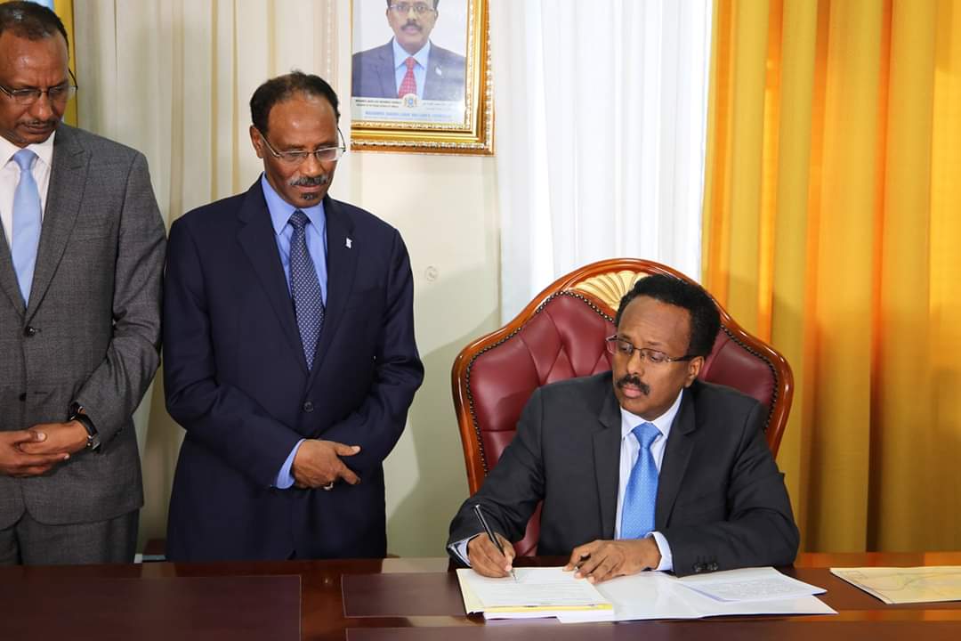 President Mohamed Abdullahi Farmaajo, has signed into law the Revenue Management Bill as part of Somalia’s endeavours to improve revenue management and processes as well as enhance good governance and financial transparency.