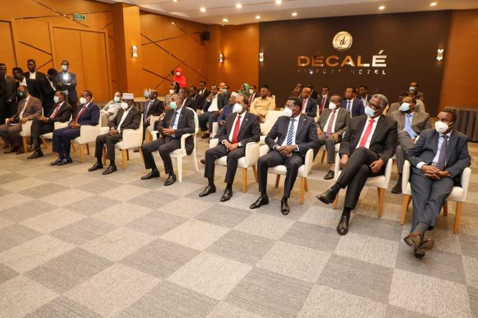 Muqdisho – Ra’iisul Wasaaraha Xukuumadda Federaalka Soomaaliya Maxamed Xuseen Rooble ayaa hadda shir kula leh Hotel Decale ee magaalada Muqdisho xubnaha Midowga Musharaxiinta.