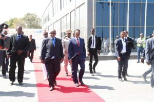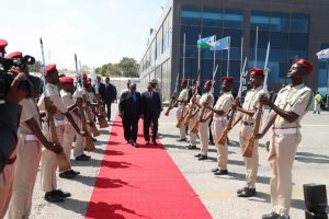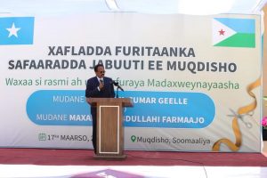 Madaxweyne Farmaajo iyo Madaxweyne Geelle ayaa ka hor intii aanu ka duulin Garoonka Diyaaradaha ee Aadan Cabdulle, waxa ay xarigga ka jareen dhismaha cusub ee safaaradda Dowladda Jabuuti ku yeelanayso Soomaaliya.