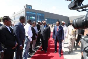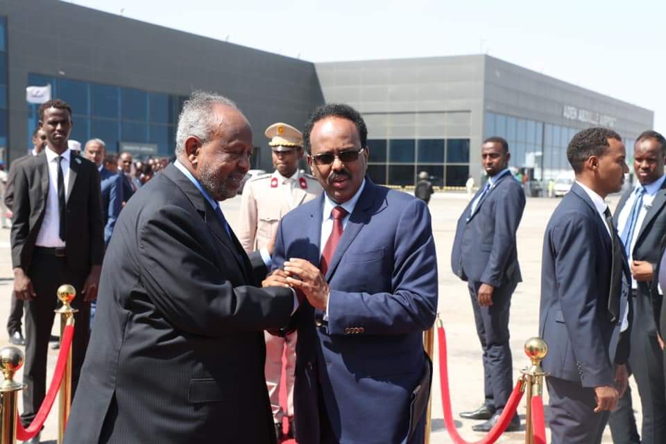 Muqdisho (UM) – Madaxweynaha Jabuuti Ismaaciil Cumar Geelle ayaa soo gabagabeeyay booqashadii labada maalmood ahayd ee uu ku yimid magaalada Muqdisho kaddib martiqaad uu ka helay Madaxweyne Maxamed Cabdullaahi Farmaajo.