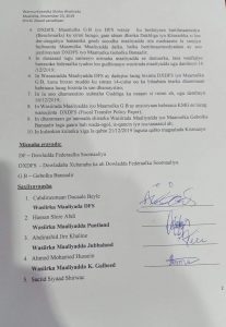 Waxaana lags soo saaray warmurtiyeed wadajir ah, oo ay ku cadyihiin waxyaabaha lagu heshiiyay.
