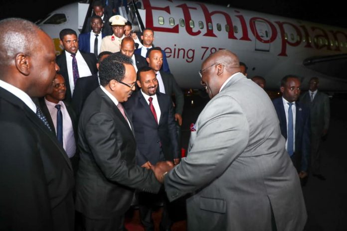 Madaxweyne Maxamed Cabdullaahi Farmaajo oo uu wehliyo Ra’iisal wasaaraha Itoobiya, Abiy Axmed ayaa caawa soo gaaray magaalada Nairobi, halkaasi lagu wado in looga xaajoodo xiisadda diblomaasi ee salka ku haysa xuduudda badda ee ay ku muransan yihiin Soomaaliya iyo Kenya.