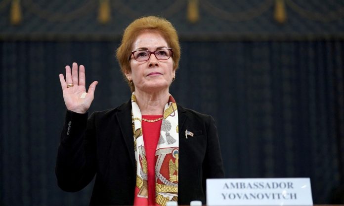 Ms Yovanovitch oo fadhigeedu ahaa magaalada Kyiv ayaa shaqada laga cayriyay bishii May, labo bilood kahor markii uu soo ifbaxay wada sheekeysigii telefoonka ku dhex maray Trump iyo dhiggiisa Ukraine Volodymyr Zelensky, kaasoo haatan udub dhexaad u ah caddeymaha.