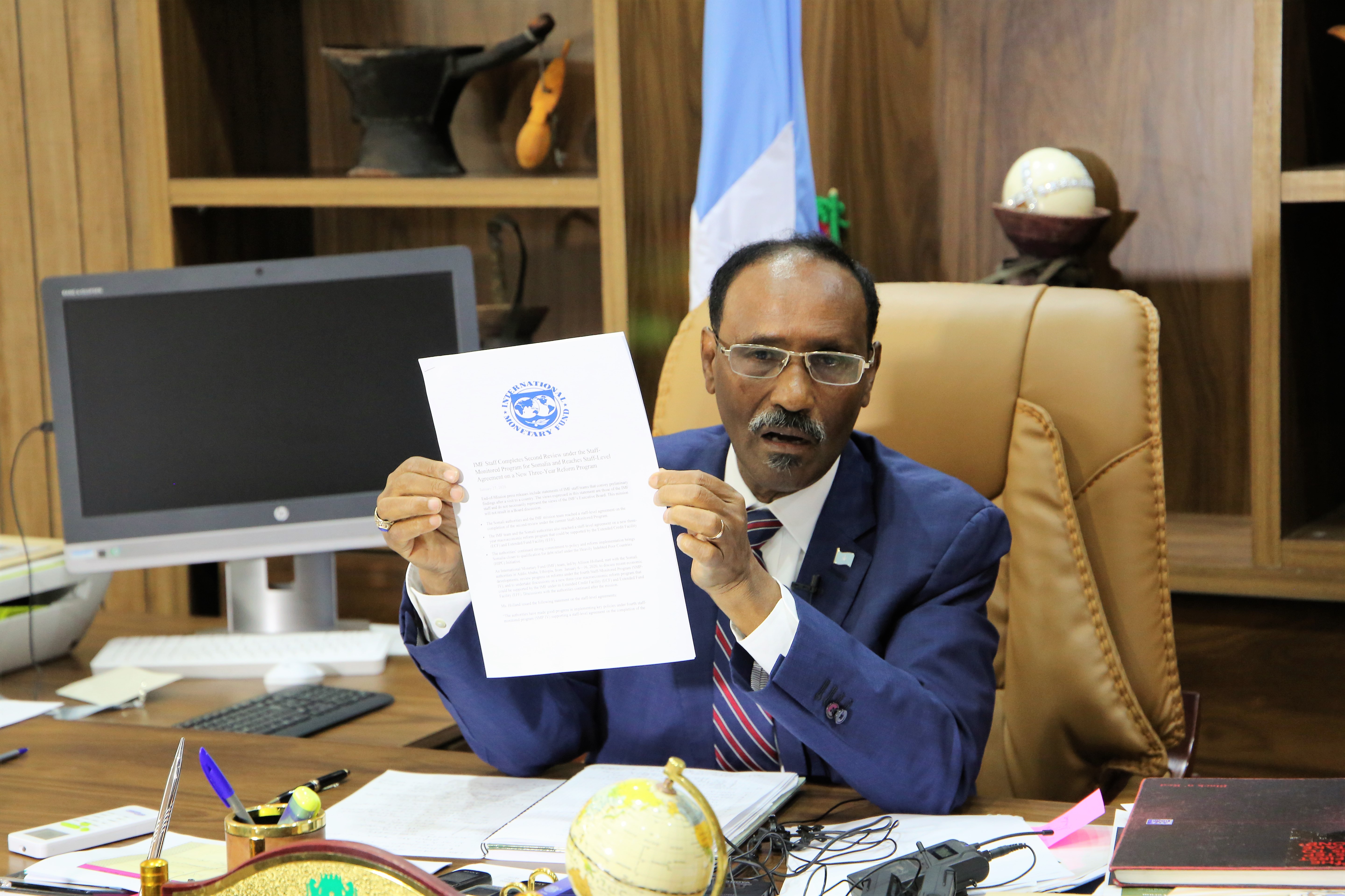 Wasiirka aya sheegay in shirkaas lagu qaatay go’aanka ah in Soomaaliya ay ka soo baxday sharuudihii ku xirnaa hannaanka loo marayo qorshaha deyn cafinta Soomaaliya.