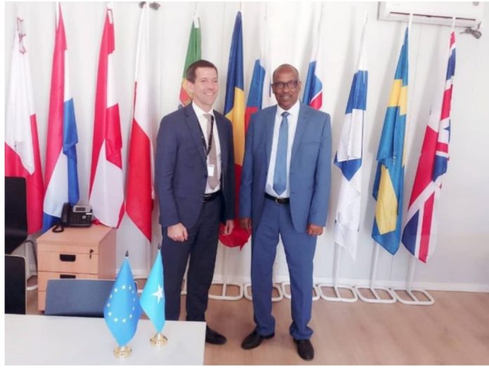 Wasiirka Waxbarashada Soomaaliya Cabdullaahi Goodax Barre ayaa kulan ka qaatay madaxa waaxda  horumarinta adeegga bulshada Midowgga Yurub, gaar ahaan Soomaaliya Mr, Olivier Louis.