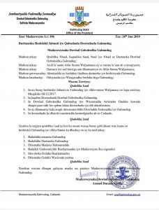 Hoos ka akhriso warqada ka soo baxday Madaxweynaha Galmudug: