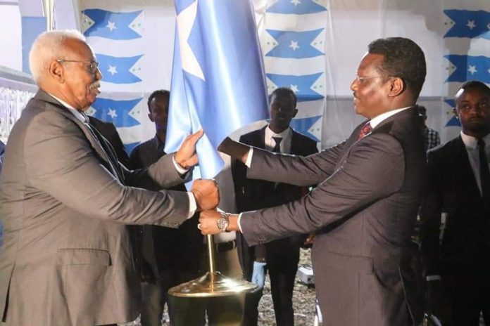 Dhuusamareeb ( UM) – Madaxweynihii hore ee Galmudug Axmed Ducaale Geelle (Xaaf) ayaa xalay si rasmi ah xilkii ugu wareejiyay Madaxweynaha cusub ee Galmudug Axmed Cabdi Kaariye (Qoorqoor) munaasabad ka dhacday magaalada Dhuusamareeb ee xarunta dowladda Galmudug.