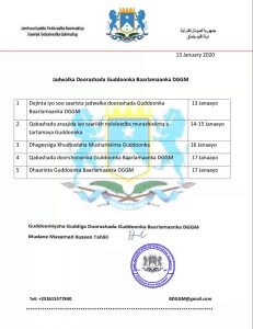 Dhuusamareeb – Guddiga Doorashooyinka Guddoonka Baarlamaanka Galmudug ayaa soo saaray Jadwalka Doorashooyinka Guddoonka Baarlamaanka 2aad ee Galmudug.